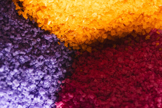 Close up of heaps of multi coloured sand