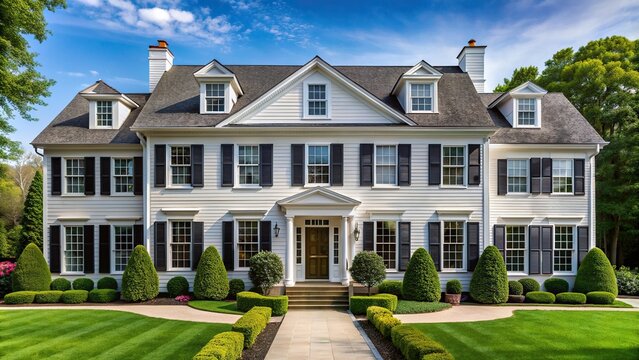 A modern, multi-story house with a wooden exterior and glass windows, featuring a spacious backyard with a patio and garden.