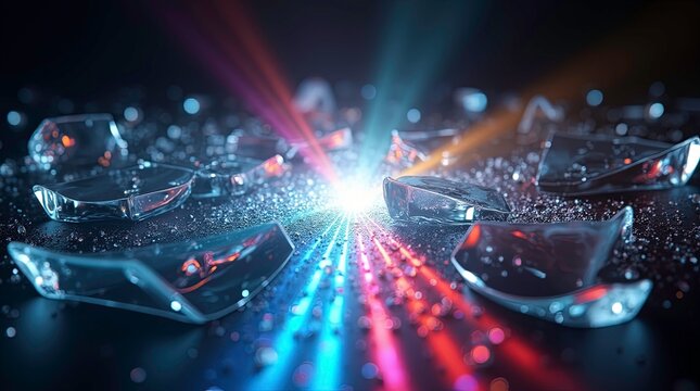 Artistic visualization of group of colorful glass blocks sitting on top of table - Generative AI