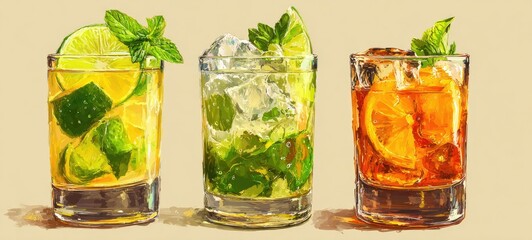 Magical cocktail with vibrant multicolor tones served with ice and lemon creating a dazzling visual experience and refreshing taste for creative mixology and festive moments