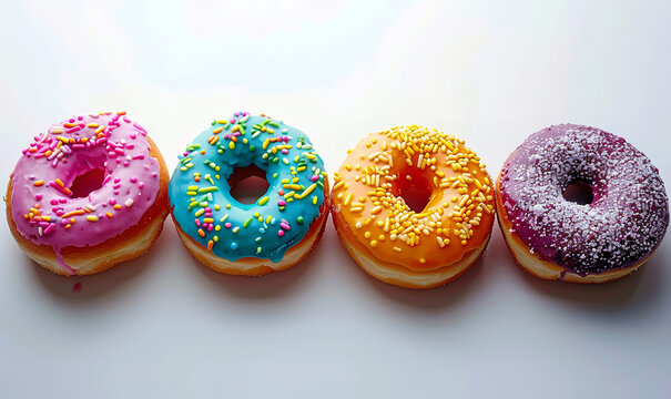 sweet delicious donuts lush fragrant fruity with multi-colored glaze close-up on a white background