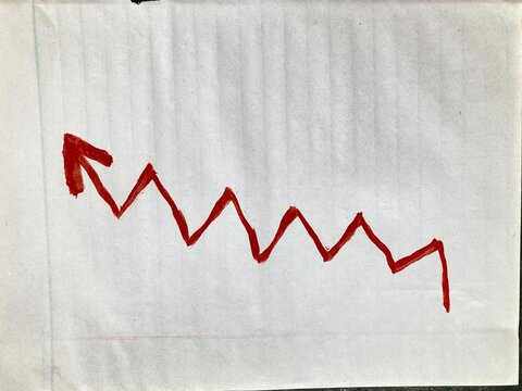 Hand drawn Arrows graph red paint on white paper. graph with arrow. business line graph with arrow transparent background