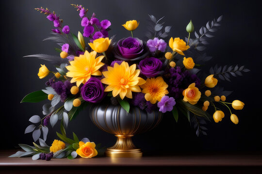 abstract floral oil painting gold and blue hydrangea flower on white background