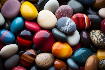 Vibrant multicolored sea stone pebble beach with colorful gemstones and abstract nature pattern
