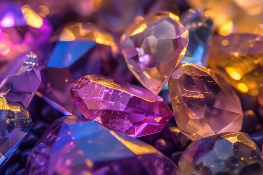 Colorful faceted gemstones reflecting light artfully