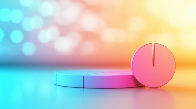 A vibrant, iridescent arrow ascends a glowing bar graph, symbolizing growth and progress against a dark, reflective background.  The scene is illuminated with multicolored light, creating a dynamic an
