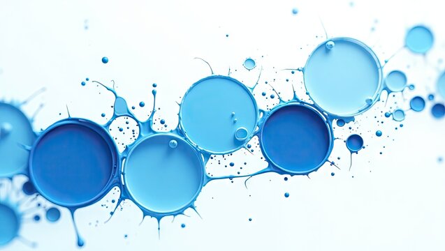Abstract blue liquid art features interconnected circular forms and droplets, creating a visually appealing design against a clean white background.