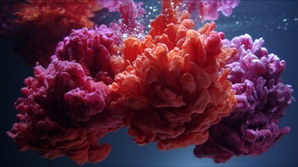 Vibrant, abstract image of swirling, multicolored paint plumes against a dark blue backdrop. Dynamic textures and fluid forms create visual interest