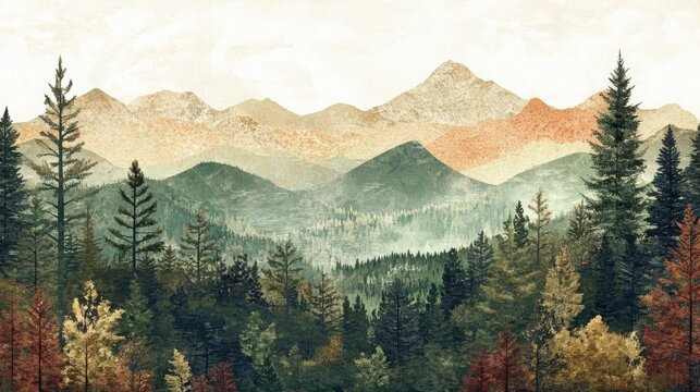 Serene mountain range at sunrise with hazey sky and rolling peaks