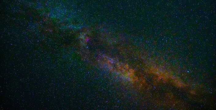 starry night sky with stars, galaxies and a bright multicolored milky way