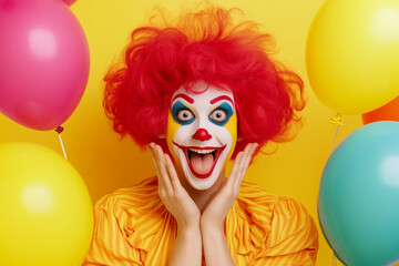 Young woman with pink rococo wig blowing bubblegum and holding spray paint can, punk rebellion and anarchy theme with neon graffiti for creative fashion subversion