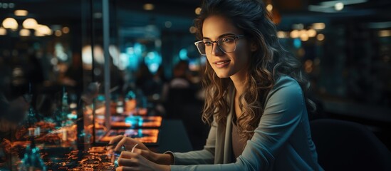 Business team discussing financial data with digital interface