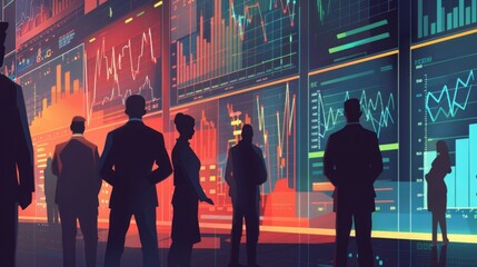 Financial data processing with multicultural team in modern office
