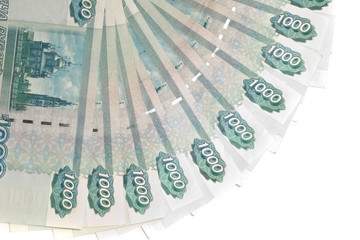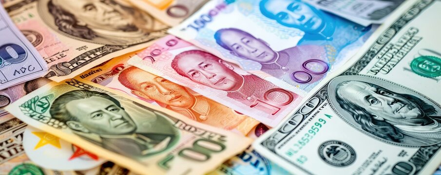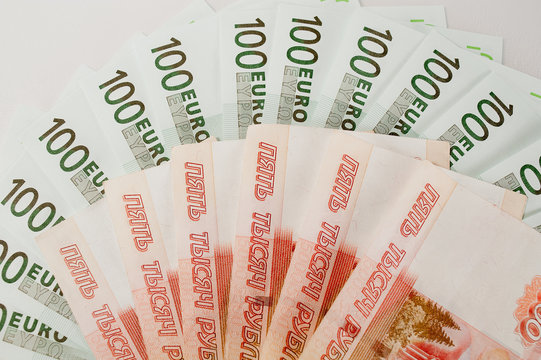 Top view of the multicurrency in a very pleasant tone. Euro, dollar, ruble banknotes highlighted on a white background.Cash. The concept of financial literacy and depositors. a stack of dollars