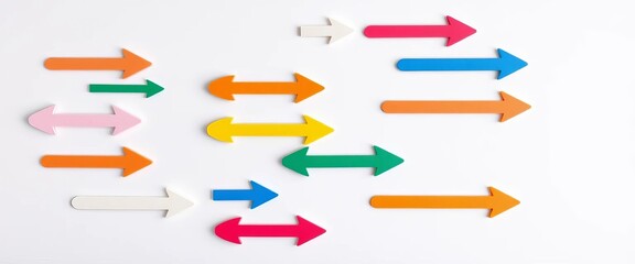 Vibrant hand drawn arrows in diverse colors point in multiple directions, perfect for design and navigation