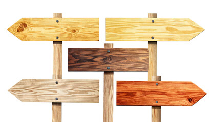 Closeup of wooden sign with multiple arrows set against palm background. Guidance, travel and orientation emphasizing navigation, tourism, and outdoor presence in natural landscape.
