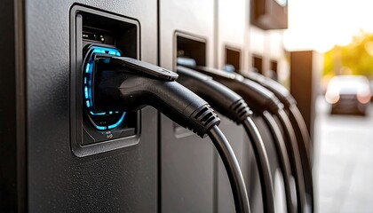 Electric Vehicle Charging Station Multiple Cables Plugged In For Sustainable Transportation