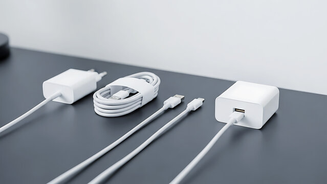 Sharing power: power adapter and power banks charging multiple devices in a messy cable connection