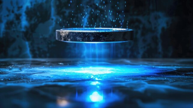 Floating superconducting magnet above a cold surface, demonstrating quantum levitation