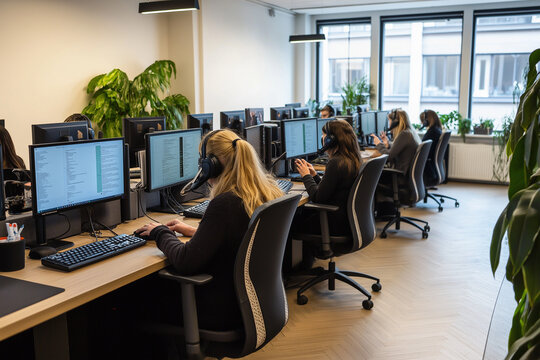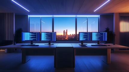 Modern open office space with computers and desks