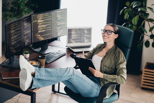 Dedicated programmer working home office multiple monitors
