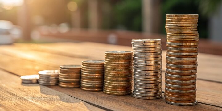 Coins, magnifying glass and a team of employees. Business valuation concept - process of determining the economic value of a whole business or company unit. Financial market / statement analysis