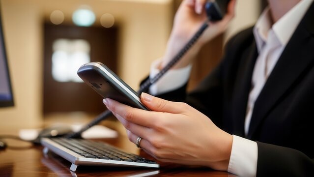 Business professional multitasking with smartphone