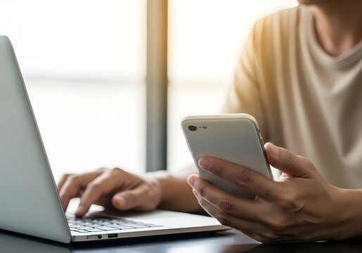 Multitasking With Smartphone And Laptop In Office Setting Images