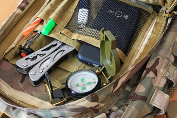 Compass, multitool in a backpack
