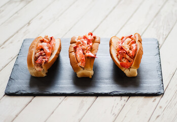 Three Lobster Rolls on Slate.