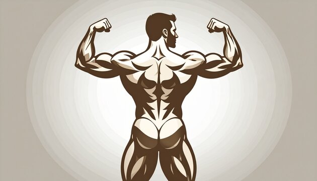 A man turns slightly to the side, flexing both his back and bicep muscles, radiating confidence and dedication.