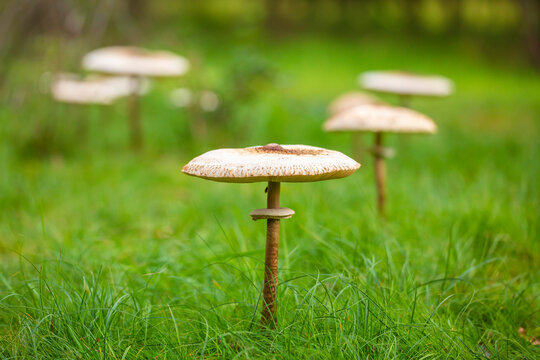 Macrolepiota procera, the parasol mushroom, in a fairy ring