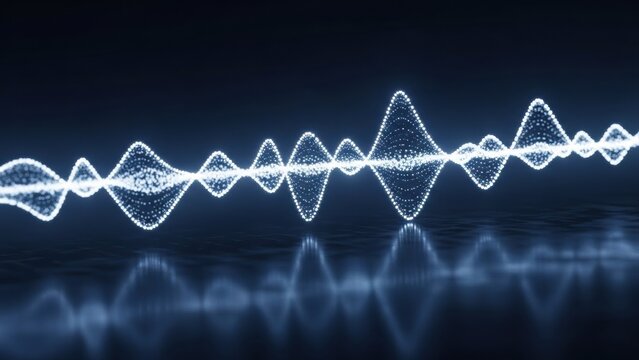 Abstract digital sound wave visualizer. Glowing audio spectrum with futuristic data flow. Technology, music, and communication concept.
