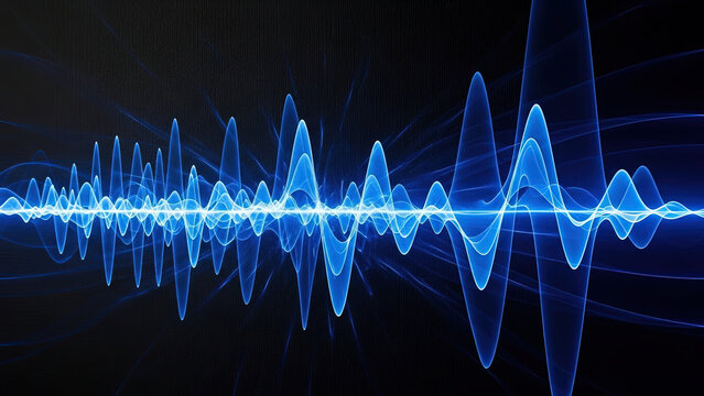 Abstract Blue Digital Sound Wave Pattern on Black Background Representing Modern Technology and Innovation in Audio Visualization Techniques