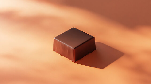 Chocolate bar square piece placed on a muted orange