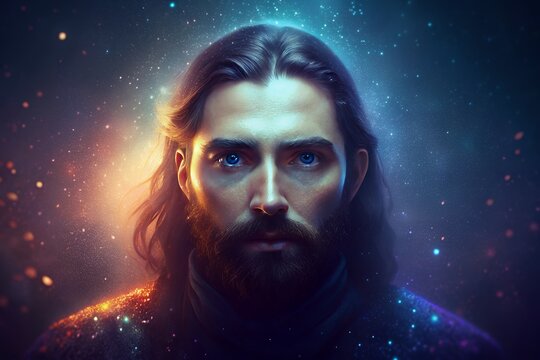 Mysterious man with glowing aura in space