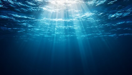 A mysterious underwater world bathed in shafts of light. The blue gradient and shadowed depths create a perfect backdrop for immersive visual stories.