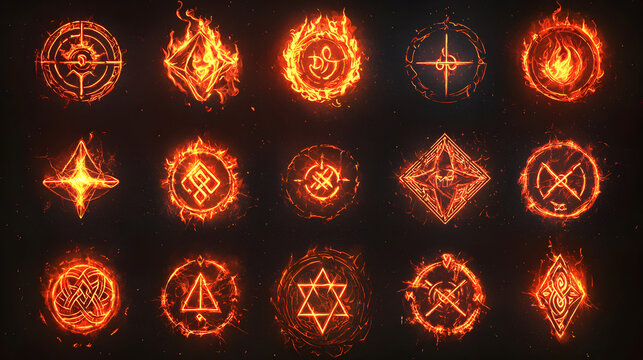 Glowing cyan and orange arcane sigils and magic circles float in a dark, mystical cosmic nebula.