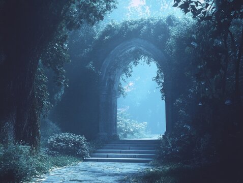 Enchanted Garden Path with Flower Arch, Stone Pathway, Fantasy, Nature , garden path , fantasy world