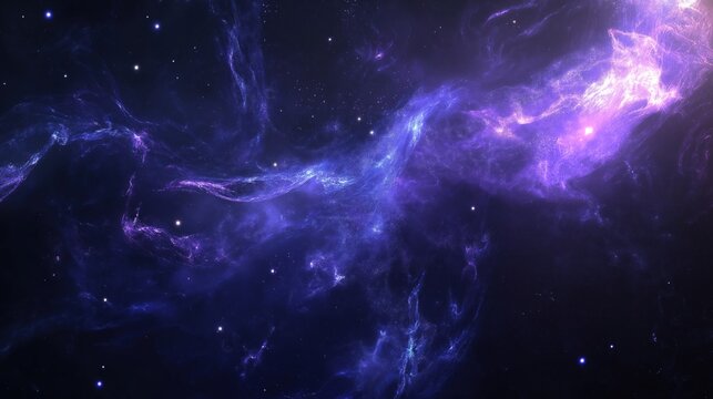 Mystical violet nebula in stargazing space scene
