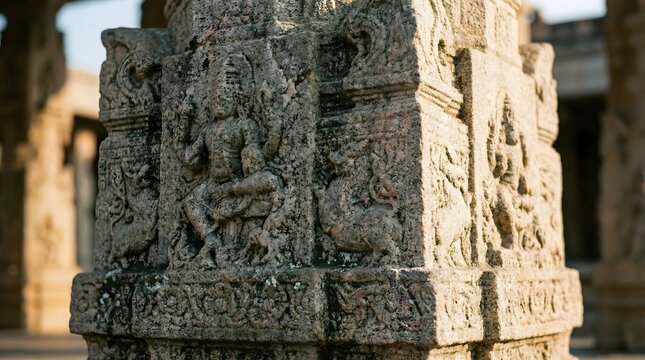 Ancient hieroglyphic obelisks in desert sunset - symbolizing the ten commandments