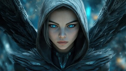 Regal fantasy lucifer with glowing amber eyes in mystic aura