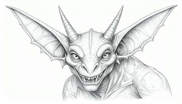 a dark mythical creature resembling a gargoyle or demon, sitting in a pensive pose against an ancient stone wall.