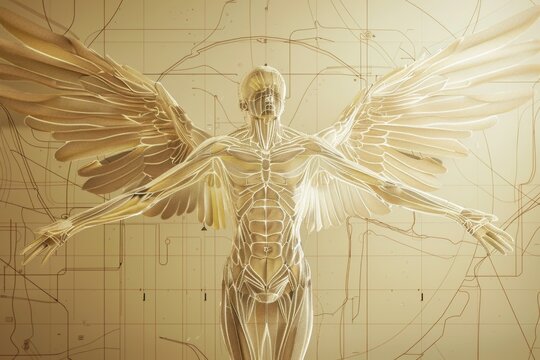 Caucasian girl angel is believed to possess supernatural powers, exuding an aura of serenity and wisdom, captured in this silver beige and white artwork by Generative AI.
