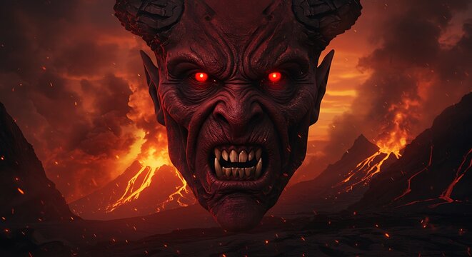 Mythical Satan Head With Dark Red Background Images