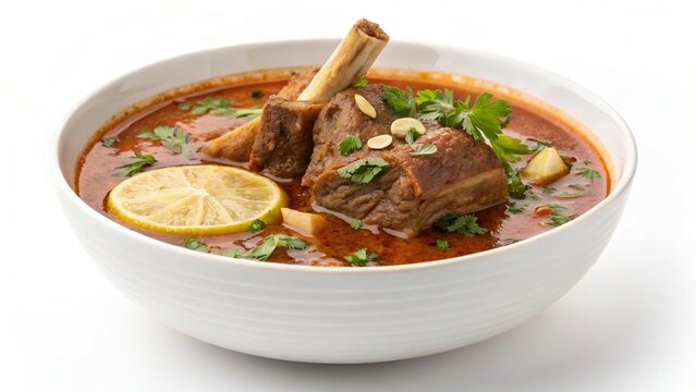 A Rich Bowl of Pakistani Nihari a Slow-Cooked and Spiced Beef Shank Stew on isolated transparent background