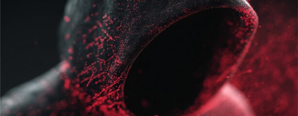 Mysterious Silhouette in Crimson Glow: A hooded figure, shrouded in shadows, emerges from a dark background. Blood red lighting creates an atmosphere of intrigue and suspense.