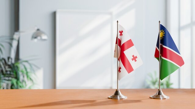 FLAGS OF GEORGIA AND NAMIBIA ON TABLE