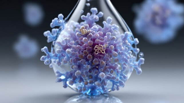 Abstract 3d rendering of vibrant spherical molecules representing microscopic particles or viral structures on a black background