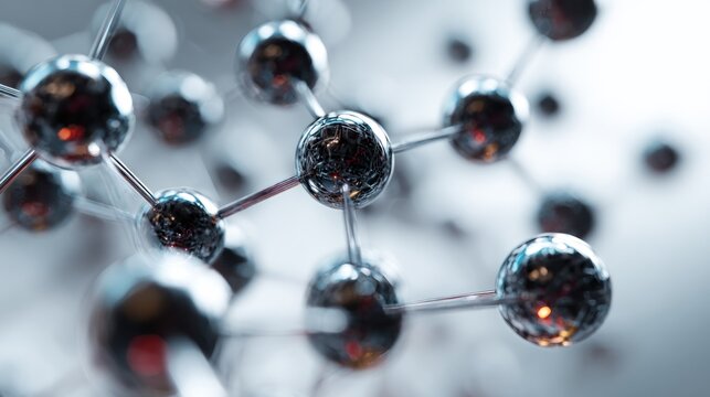 Floating molecular structures on gray background